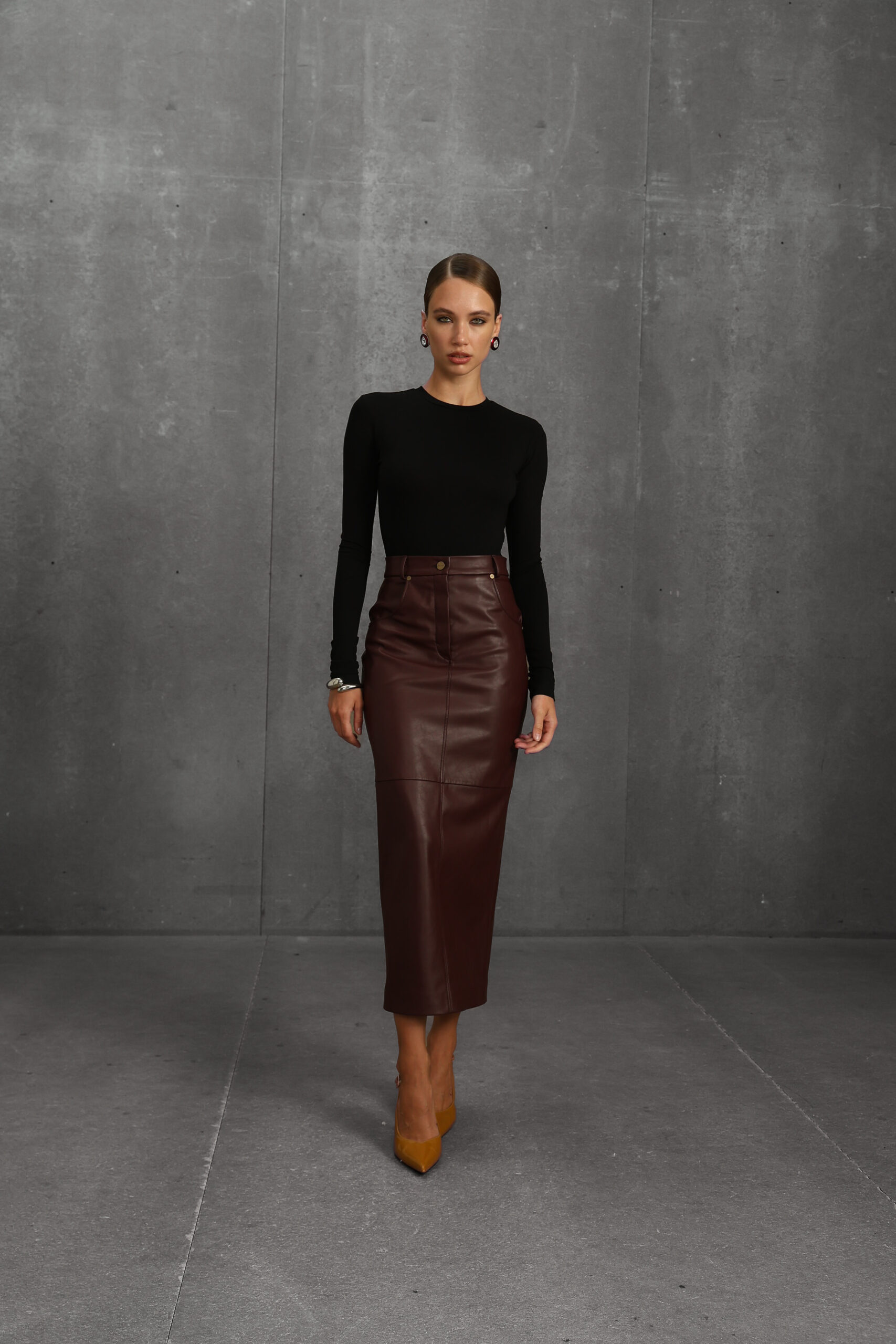 Kluczowe akcenty: całkowicie czarne stylizacje, ekoskóra, długości midi, strukturalne kurtki, teksturowane tkaniny.