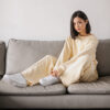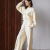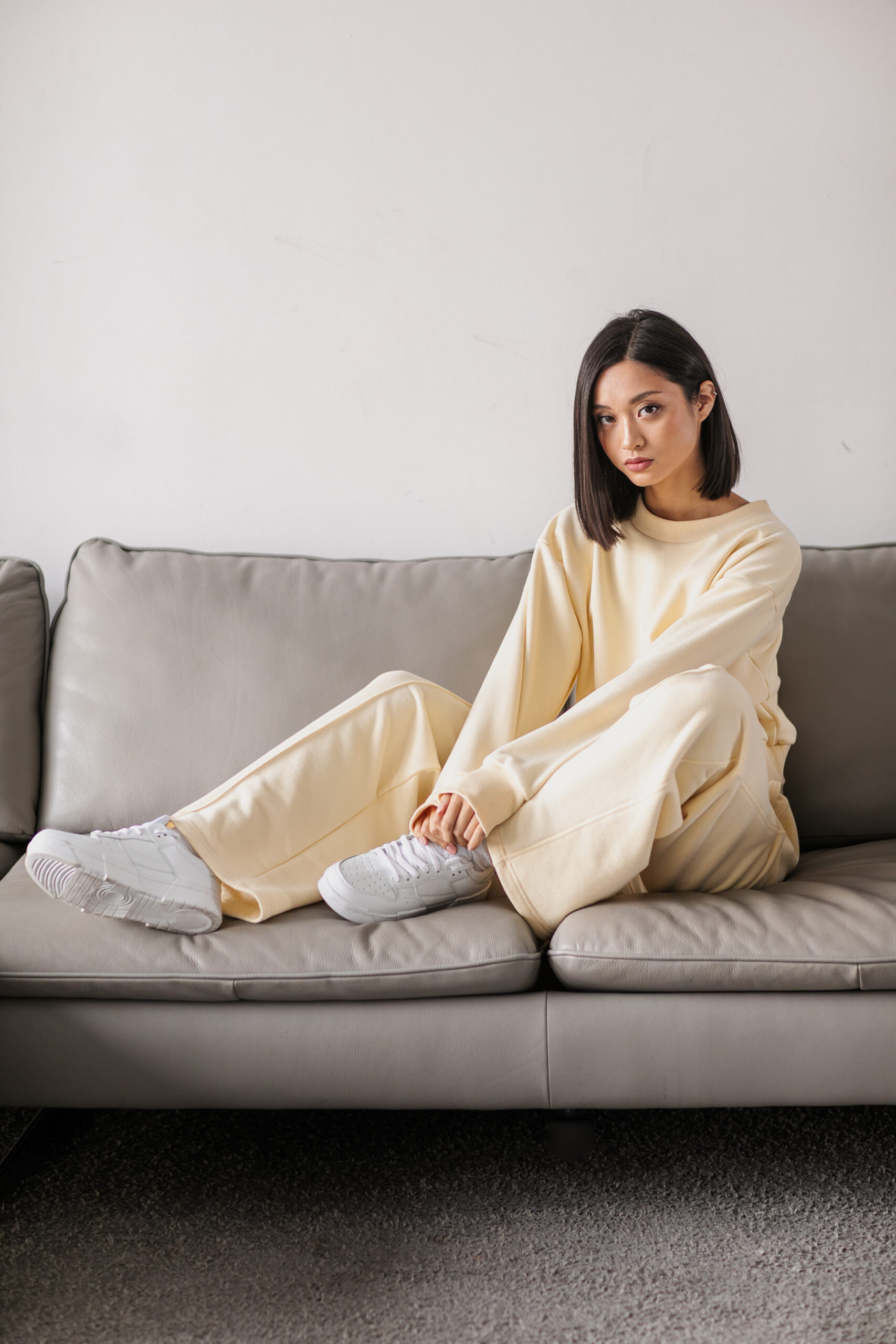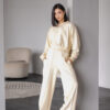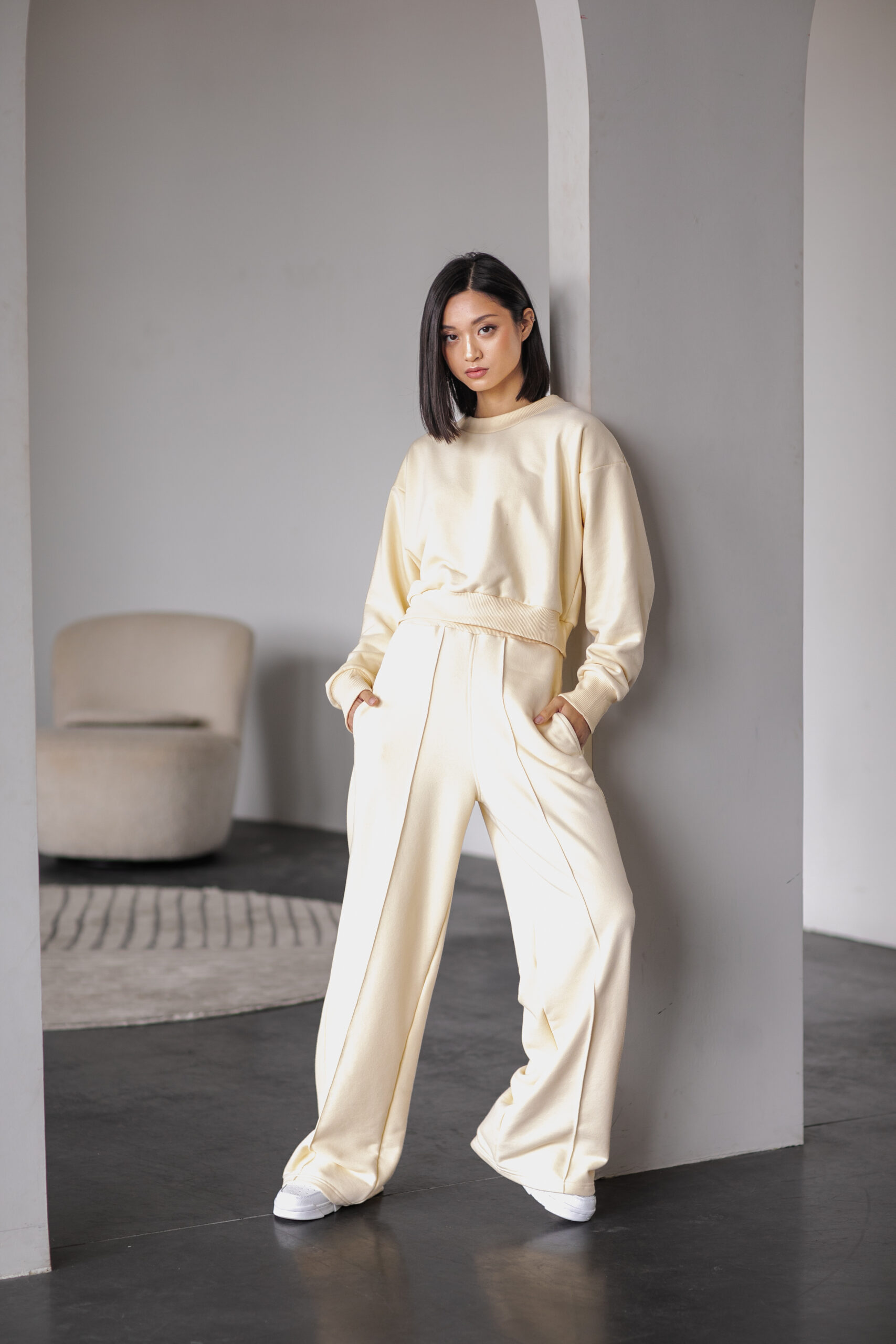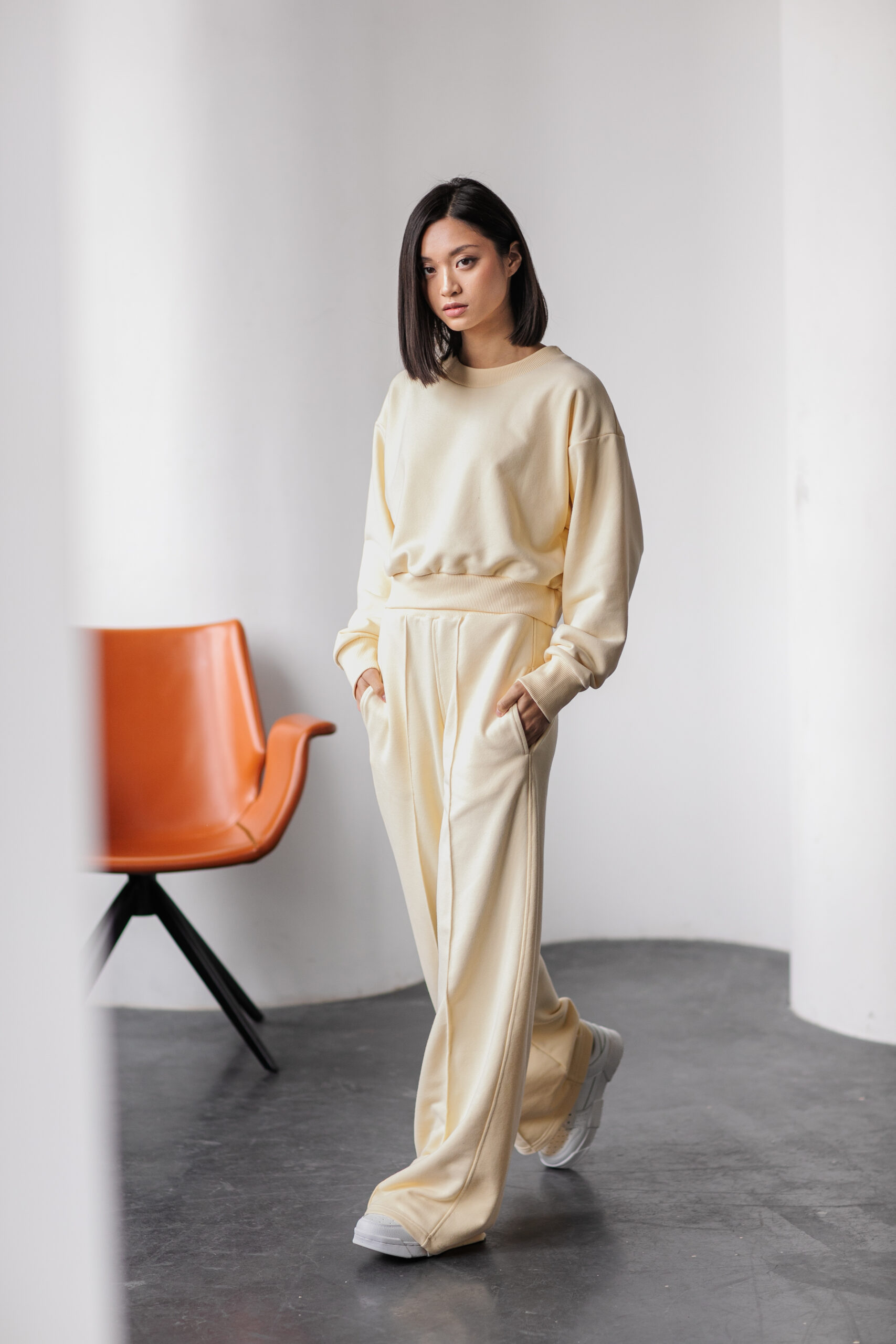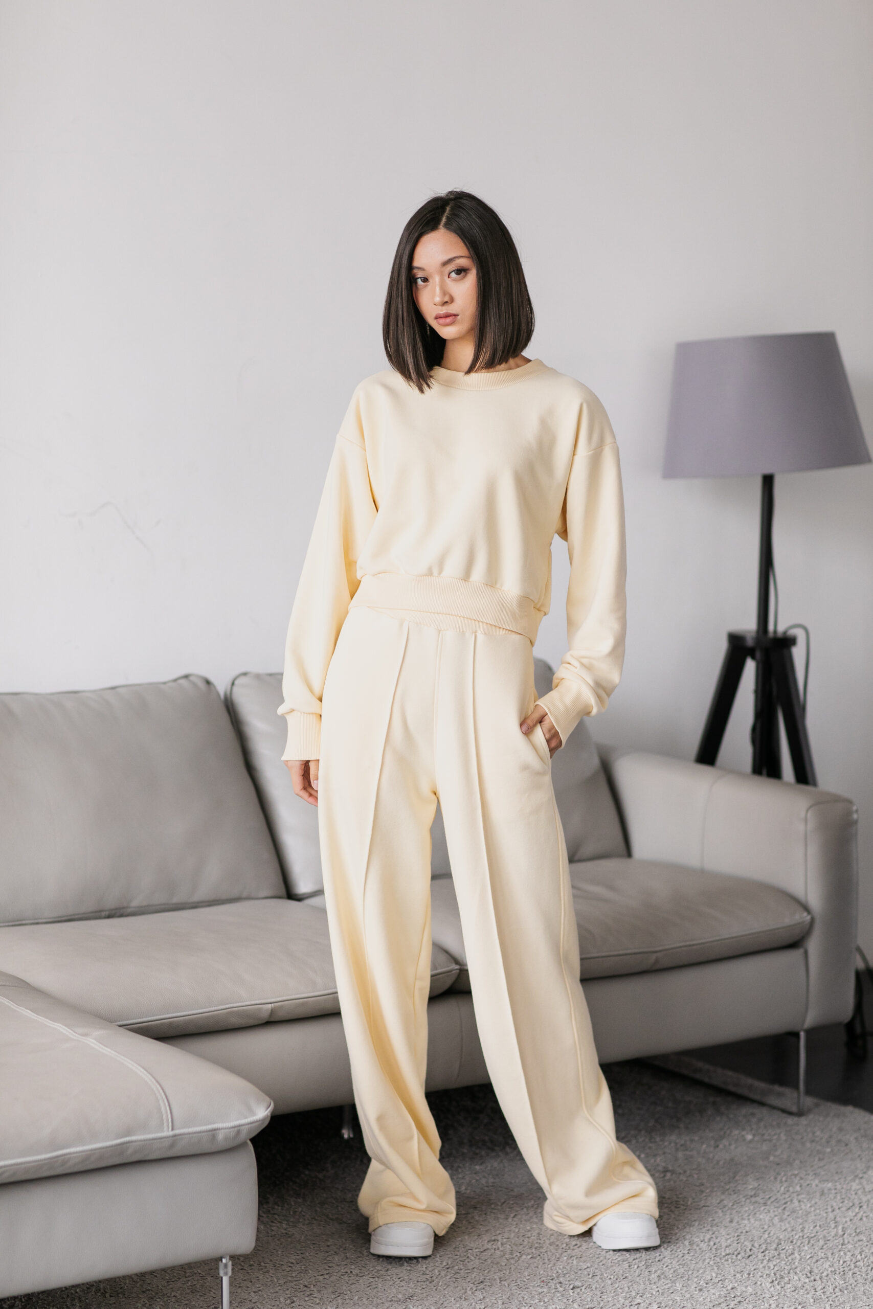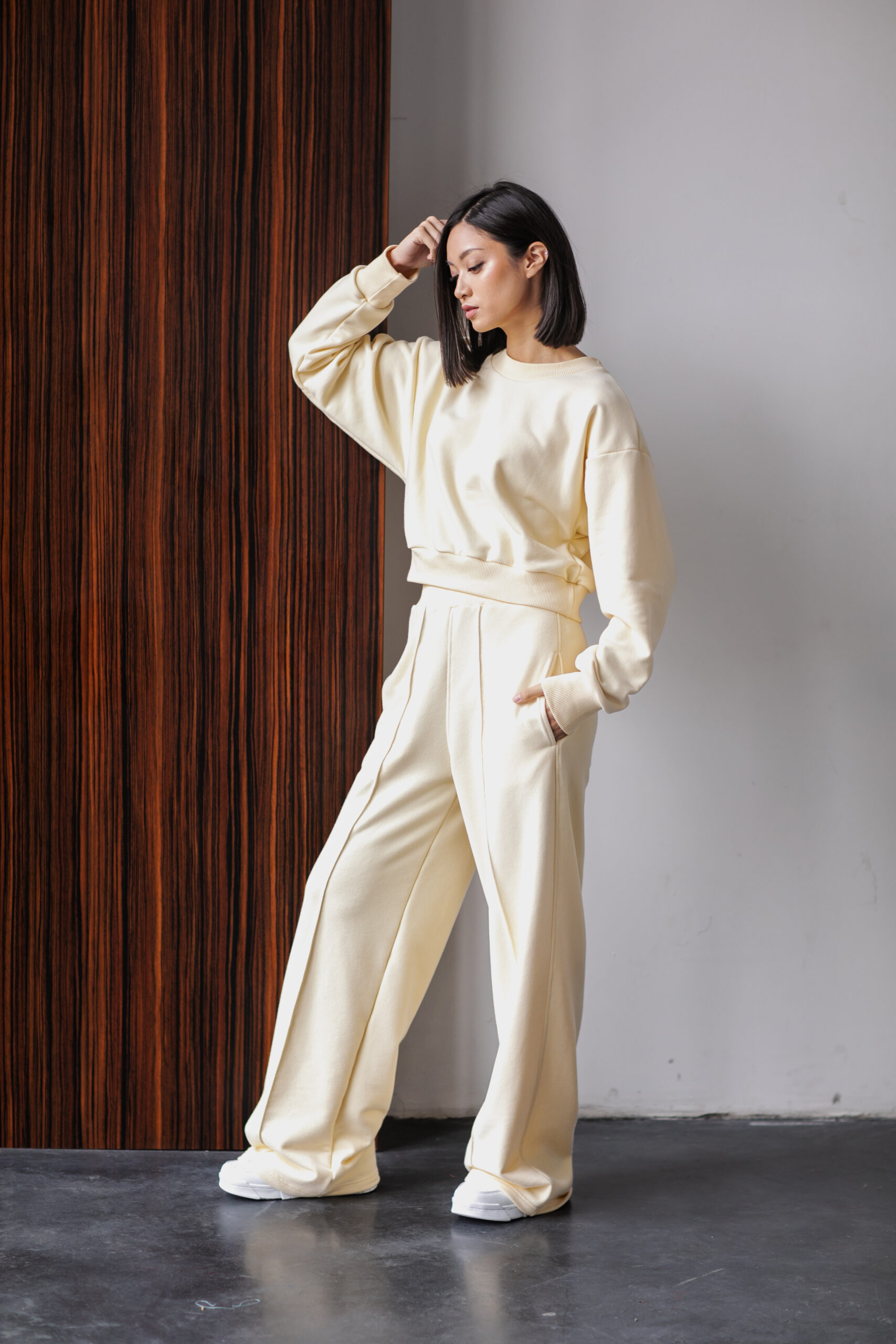 Sweatsuit set of short sweatshirt and straight pants vanilla