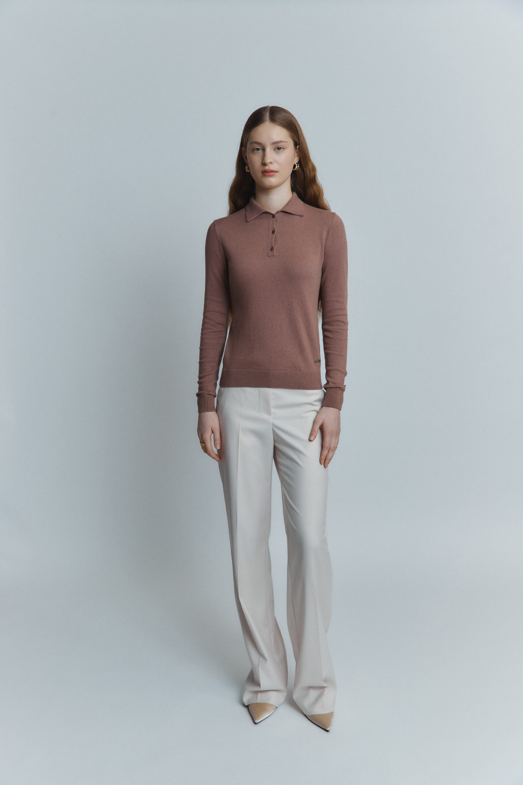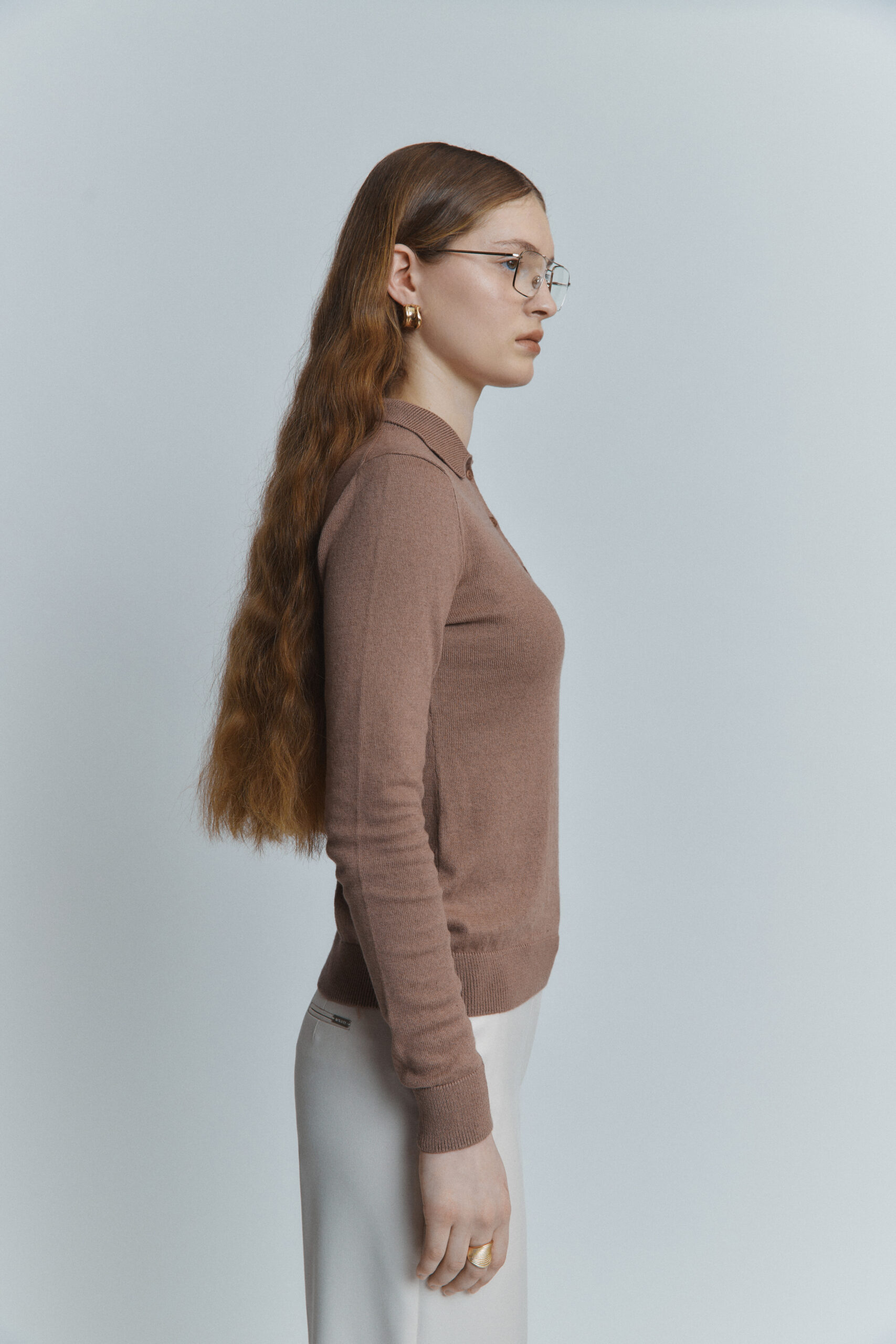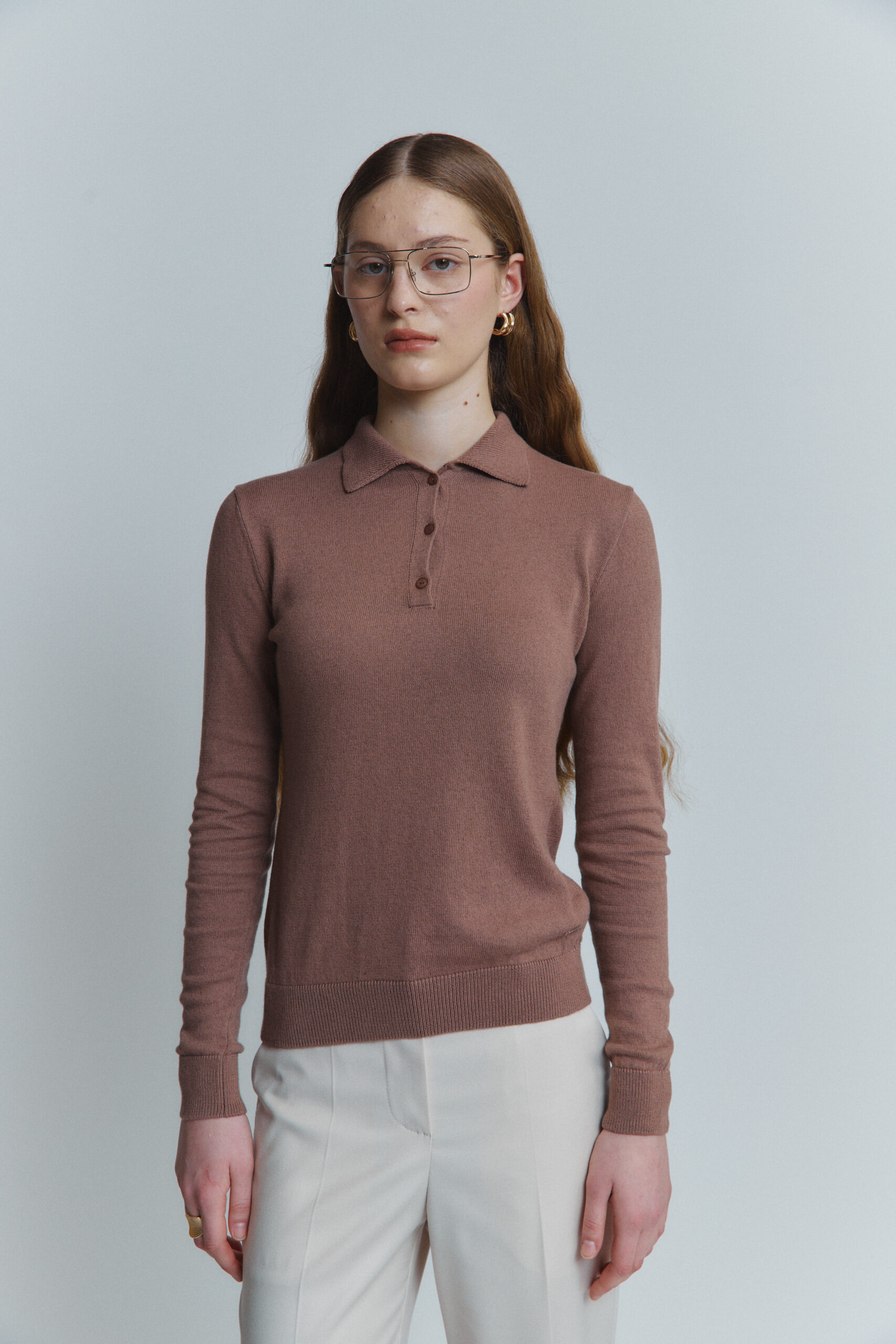 Koszulka polo damska z długim rękawem w kolorze kakao
