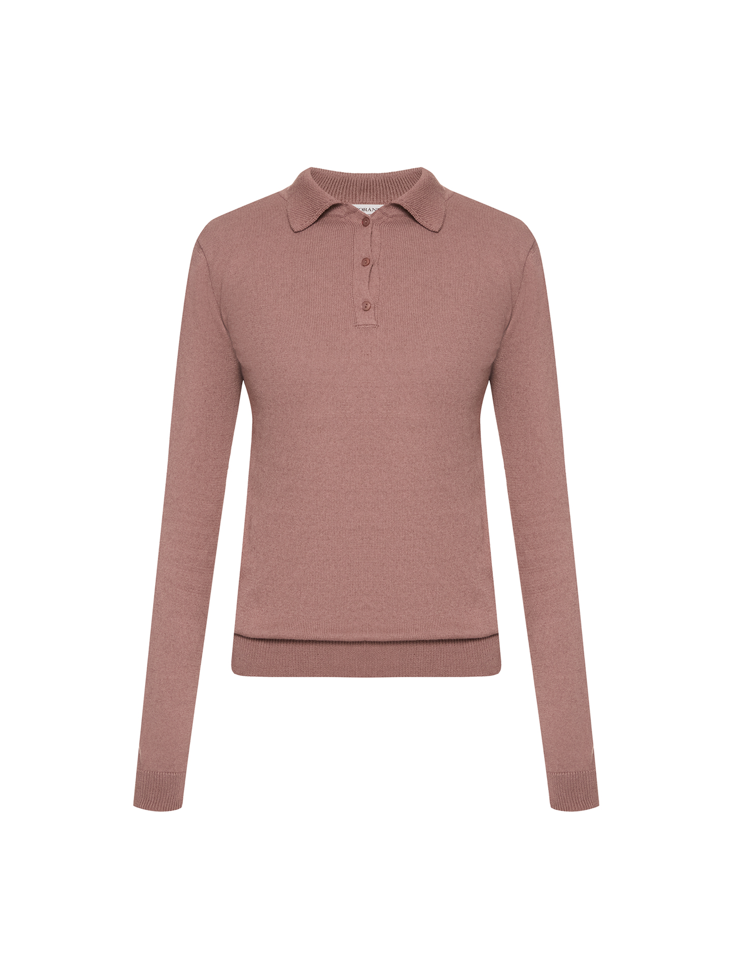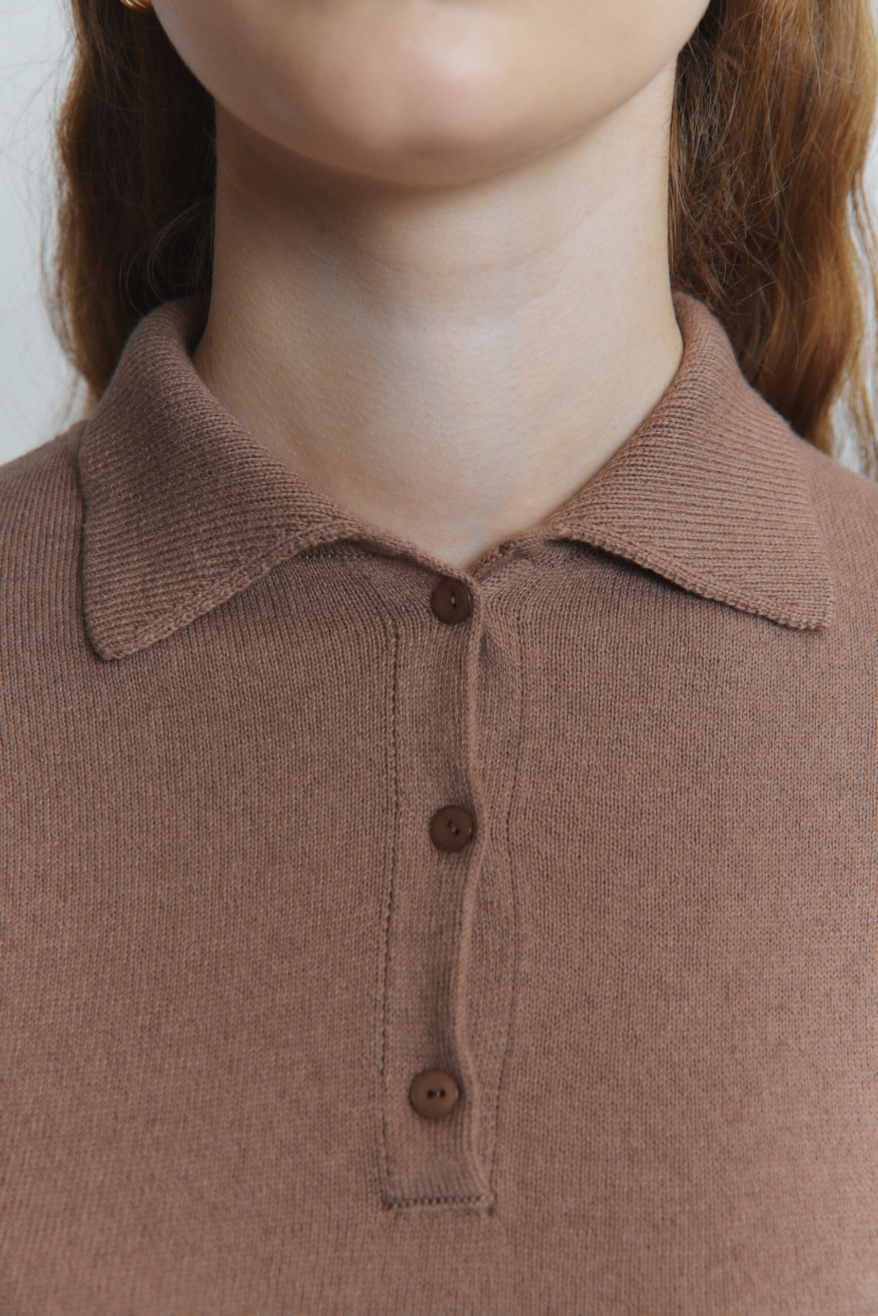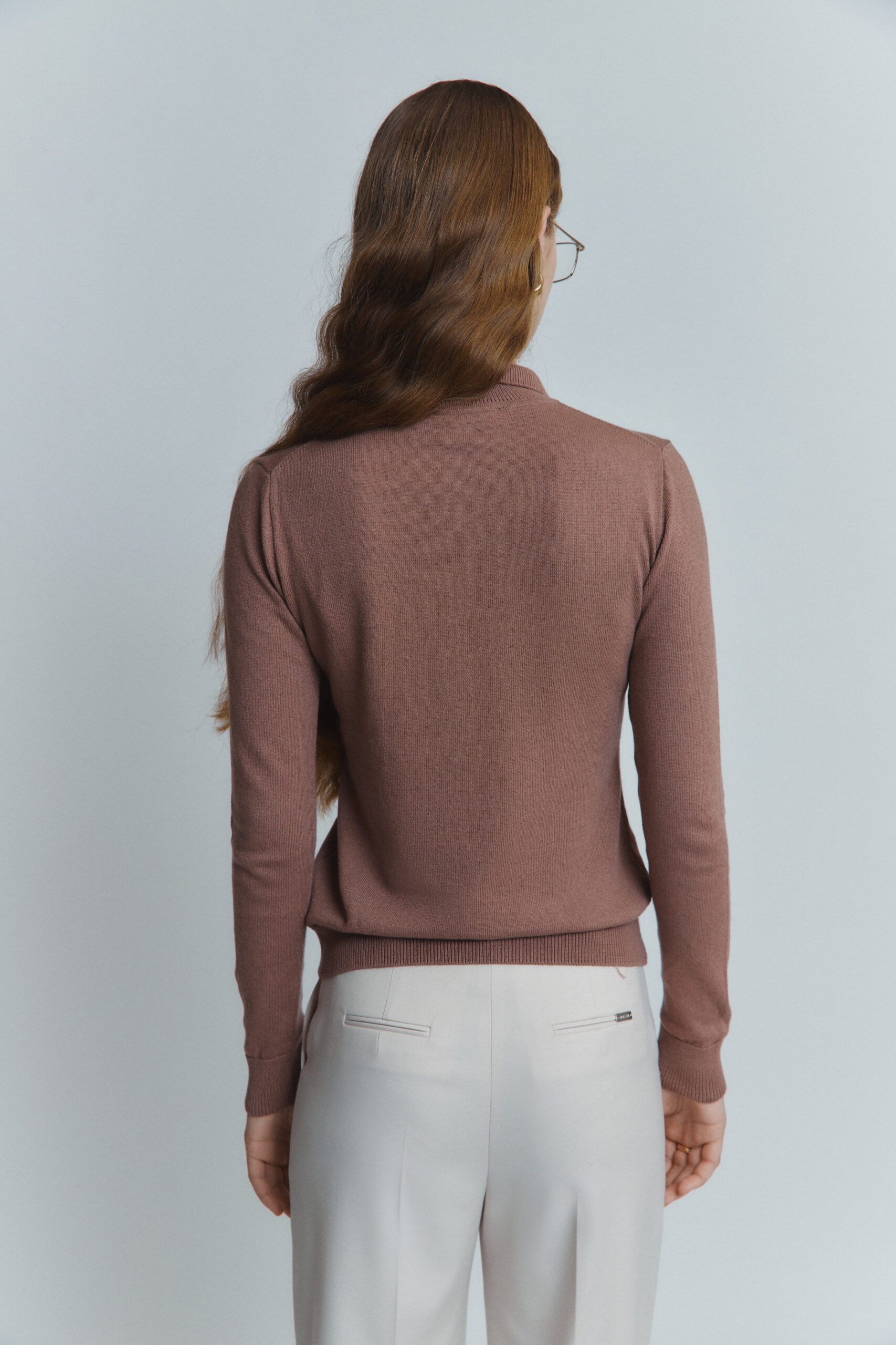 Koszulka polo damska z długim rękawem w kolorze kakao