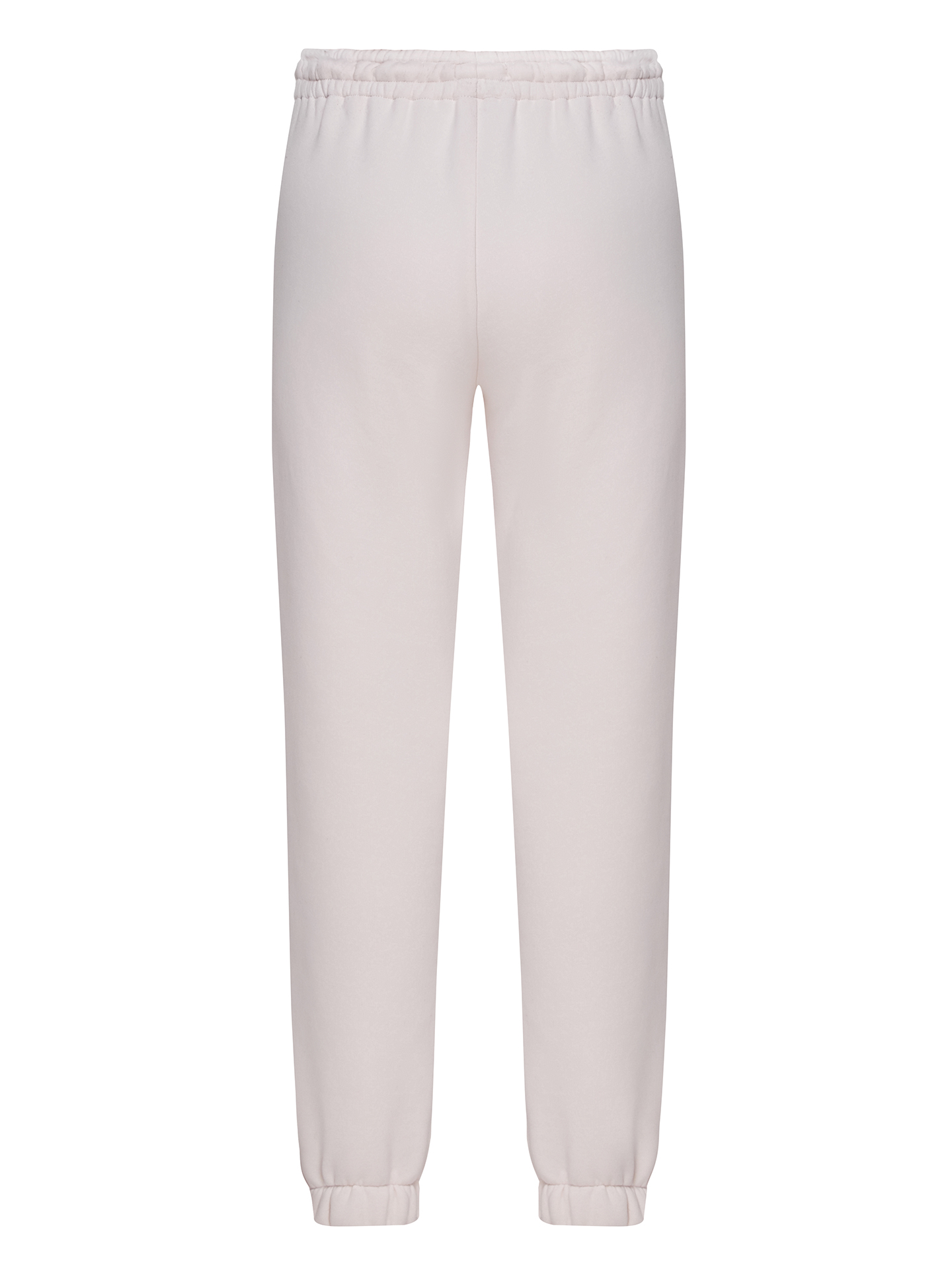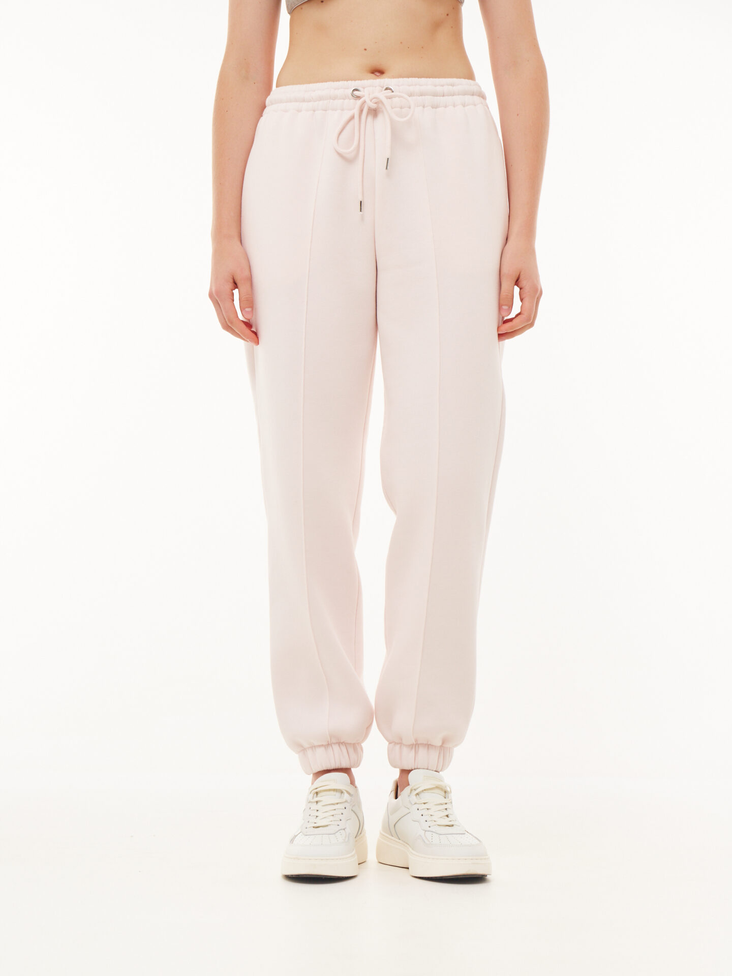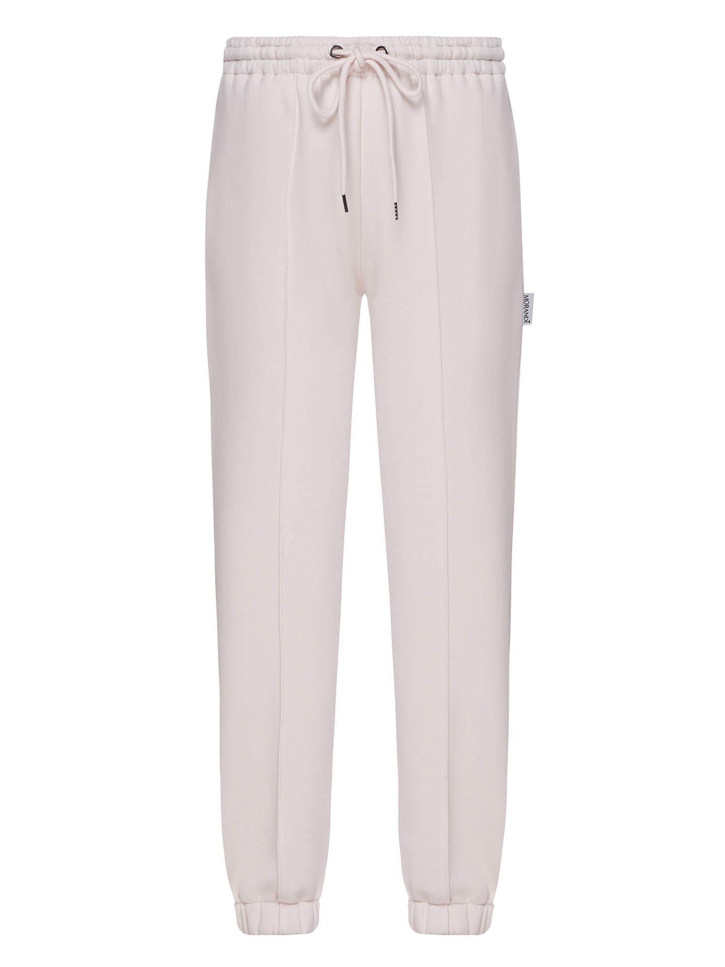 Joggery z elastycznym pasem z ozdobnymi przeszyciami z przodu i kieszeniami w szwie bocznym. Materiał to trójnitkowa dzianina z okrywą włókienną, dzięki niewielkiej zawartości poliestru tkanina nie rozciąga się, nie odkształca i nie kurczy po praniu.