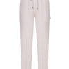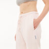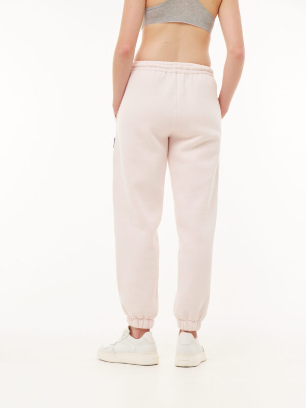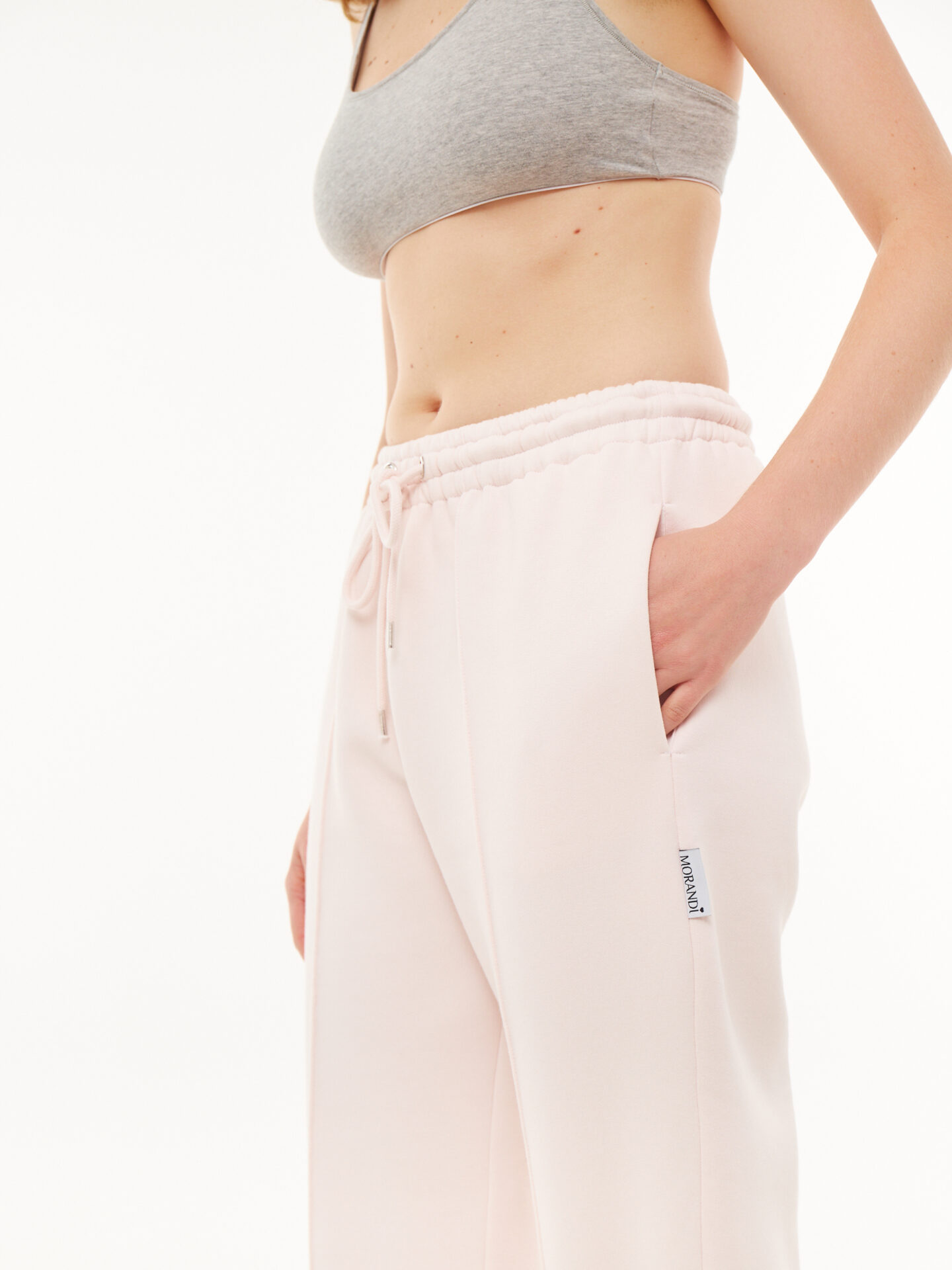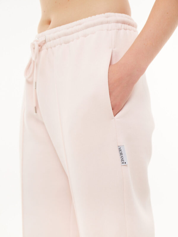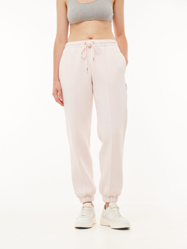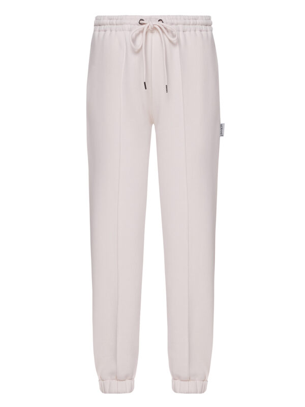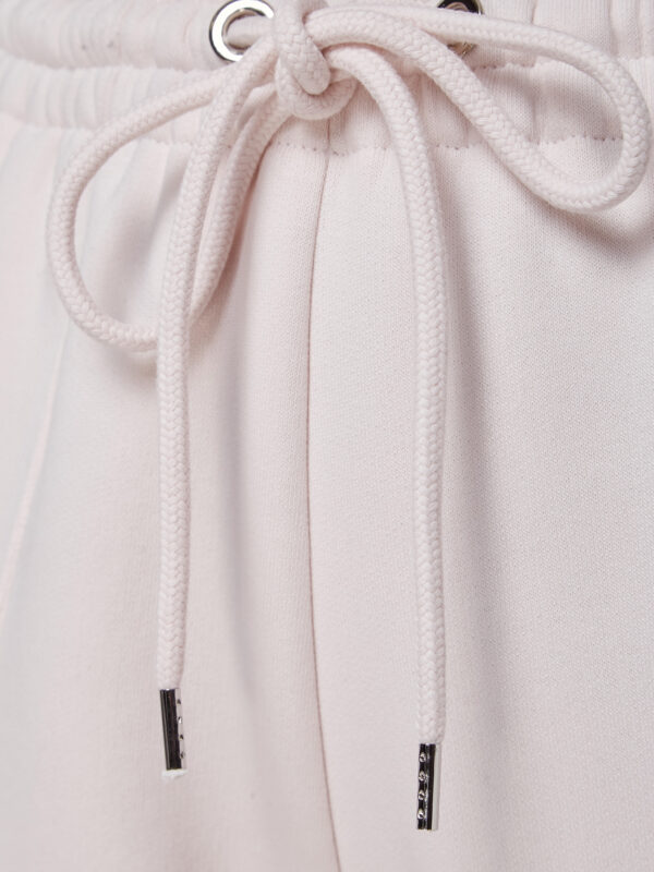 Joggery z elastycznym pasem z ozdobnymi przeszyciami z przodu i kieszeniami w szwie bocznym. Materiał to trójnitkowa dzianina z okrywą włókienną, dzięki niewielkiej zawartości poliestru tkanina nie rozciąga się, nie odkształca i nie kurczy po praniu.